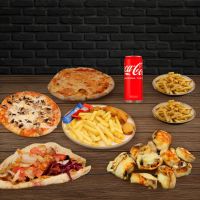 Das perfekte Familienessen! Zu 1x Döner Classic, 1x große Pizza nach Wahl, 1x Pizzabrötchen nach Wahl, 6er Nuggets mit Pommes, 3 kleine Pommes inkl. 4 Getränke eurer Wahl