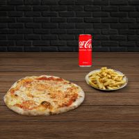 Genieße 1x große Pizza nach Wahl, dazu 1x kleine Pommes Frites und ein Getränk deiner Wahl. Für echte Pizza-Fans!