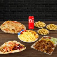 Das ultimative Paket für die ganze Familie! Zu 1x Döner Classic, 1x Döner Teller Classic, 1x große Pizza nach Wahl, 6er Nuggets mit Pommes, 3 kleine Pommes inkl. 4 Getränke eurer Wahl