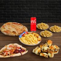 Das perfekte Familienessen! Zu 1x Döner Classic, 1x große Pizza nach Wahl, 1x Pizzabrötchen nach Wahl, 6er Nuggets mit Pommes, 3 kleine Pommes inkl. 4 Getränke eurer Wahl