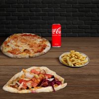 Die Klassiker in Kombination! 1x Döner Classic, 1x große Pizza nach Wahl, 1 kleine Pommes inkl. 2 Getränke eurer Wahl