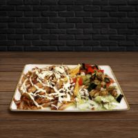 Perfekt für zwei: Doppelte Portion von mariniertem Lammspieß, Hähnchenspieß, Chicken Wings, Adana Kebap und drei hausgemachten Dips deiner Wahl