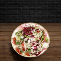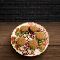 Eisbergsalat, Tomaten, Gurken, knackigen Paprika, Zwiebeln, Karottenstreifen und Falafel