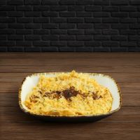 Nur mit Hackfleischsoße und schmelzendem Käse